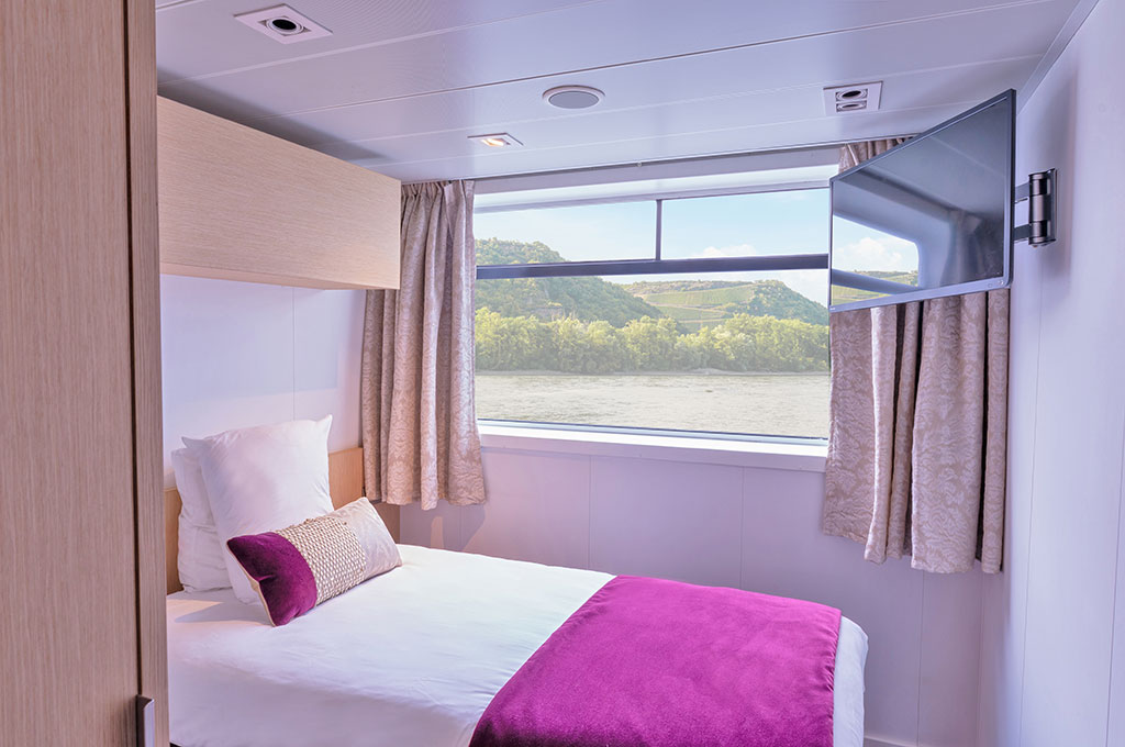 Entspannen, erleben und genießen - mit französischem Flair. Eine romantische Flusskreuzfahrt mit der MS Lafayette ist Urlaub auf dem Fluss, wie man ihn sich vorstellt: Relaxen Sie einfach bei einer Erfrischung auf dem Sonnendeck, oder genießen Sie einen Snack in der Panoramabar, während die schönsten Landschaften vor Ihrem Auge vorbeiziehen. Die MS Lafayette, das luxuriöse 5-Anker-Schiff der auf Fluss- und Küstenkreuzfahrten spezialisierten Reederei Croisi Europe, hat alles, was eine schöne Kreuzfahrt ausmacht: französische Küche, die in dem eleganten Bordrestaurant serviert wird, ein abwechslungsreiches Ausflugs- und Unterhaltungsprogramm, eine legere Bordatmosphäre und aufmerksame Crewmitglieder. Die MS Lafayette besucht die beliebtesten Reiseziele, die es auf Europas Flüssen zu entdecken gibt und wurde im Jahr 2014 vollumfänglich modernisiert. Der moderne Komfort der hellen und gemütlichen Kabinen, die Platz für 80 Passagiere bieten, verspricht erholsame Reisetage.