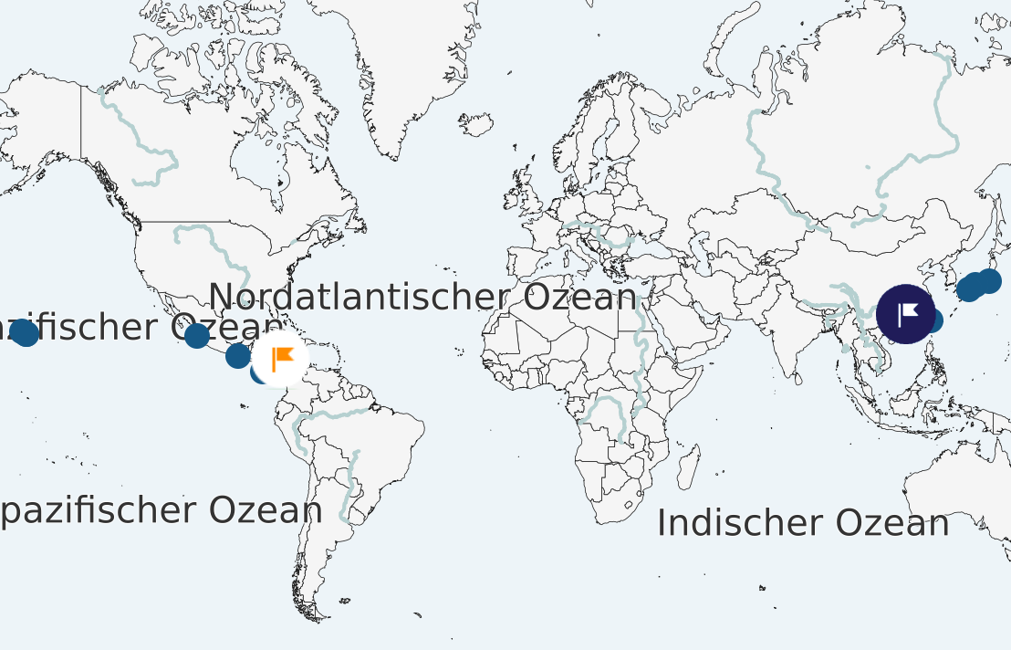 | Tag | Datum | Reiseziel | Ankunft | Abfahrt |